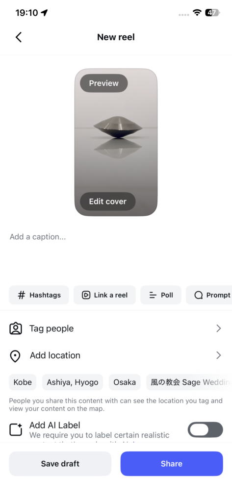 Finalize your caption and tags, then tap “Share” to upload. You’re all set!